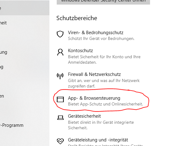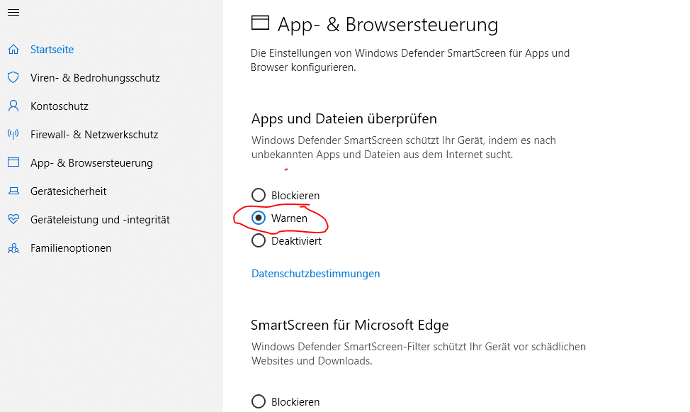 Lösung: Deaktivieren des SmartScreens.